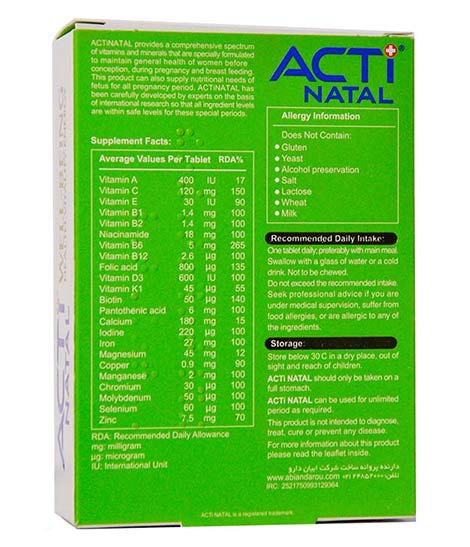 - اگرچه قرص اکتی ناتال مکمل مخصوص خانمهای بارداری و شیرده است با این حال به علت حساسیت بالای این دوران، توصیه میشود مصرف آن تحت نظر پزشک صورت گیرد.